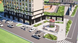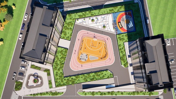 * Детская и спортивная площадки на стилобате