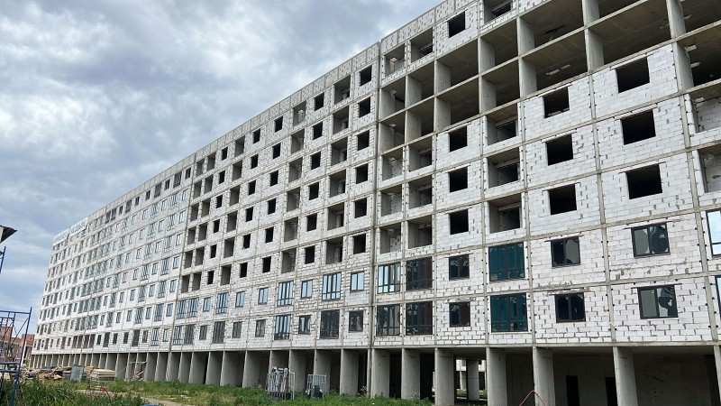 Четыре корпуса высотой в 9-10 этажей строятся по монолитно-кирпичной технологии. Для каркаса и перекрытия использованы железобетонные конструкции.