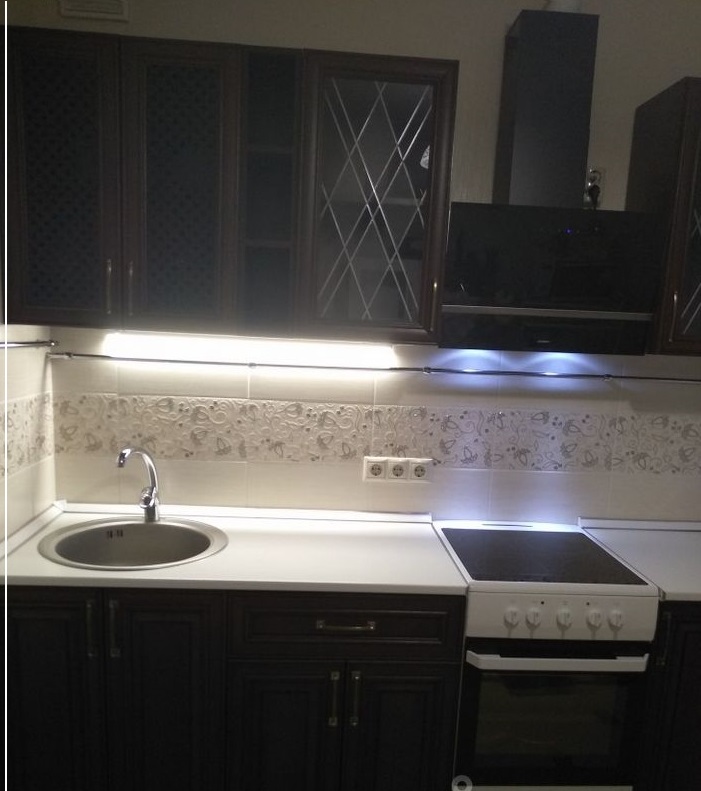 Кухонный гарнитур делали на заказ, вытяжка и электроплита Hansa.