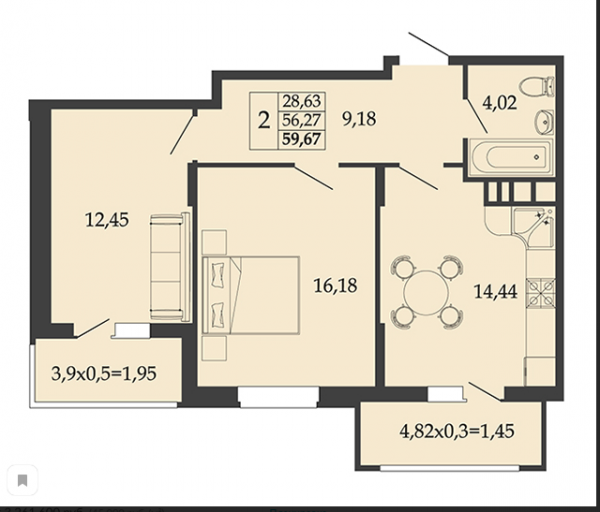 2 комн. квартира в новостройке