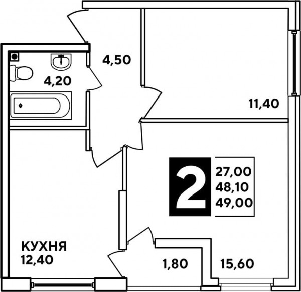 2 комн. квартира в новостройке