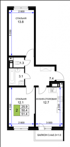 2 комн. квартира в новостройке