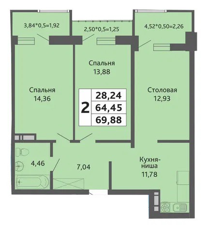 Две спальни и огромная застекленная лоджия 5.71 м2!!!