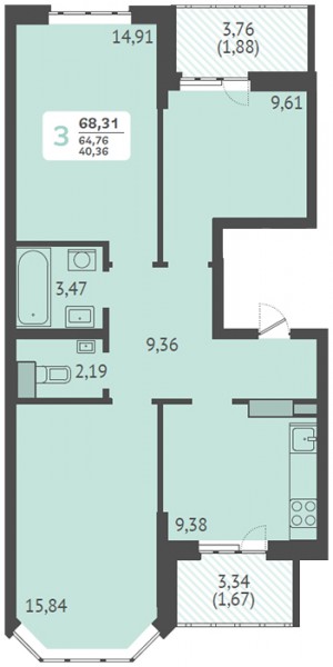 3 комн. квартира в новостройке