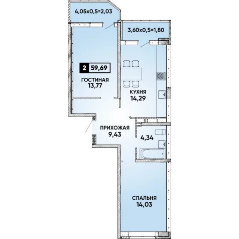 2 комн. квартира