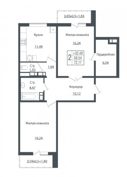 2 комн. квартира в новостройке