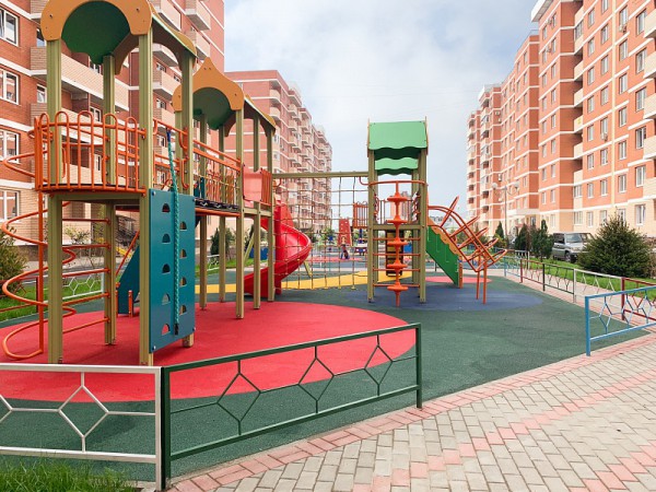 Сам комплекс по праву считается одним из лучших в городе. Замечательная придомовая территория со спортплощадками, скейт-парком, велопарковками и футбольными полями. Перед домом красивый ландшафт с цветочными клумбами, зелёной травой, скамейками и беседками. Для детей обустроена площадка с безопасным покрытием, тренажёрами и всем необходимым оборудованием.