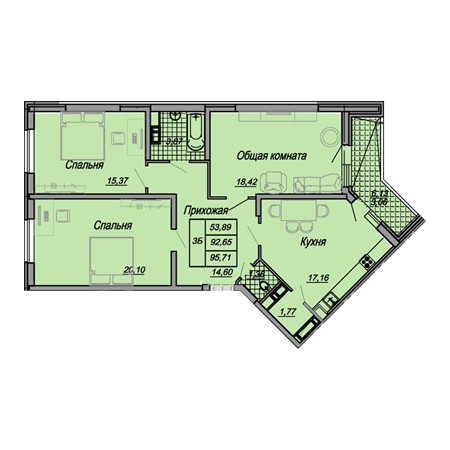 3 комн. квартира в новостройке