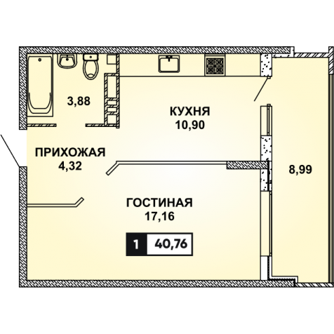 1 комн. квартира в новостройке