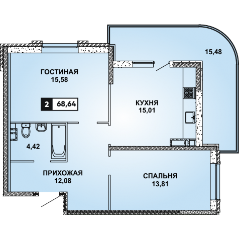 2 комн. квартира в новостройке