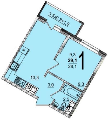 Отличная планировка по переуступке. Просторная кухня гостиная 13 кв.м. Балкон.