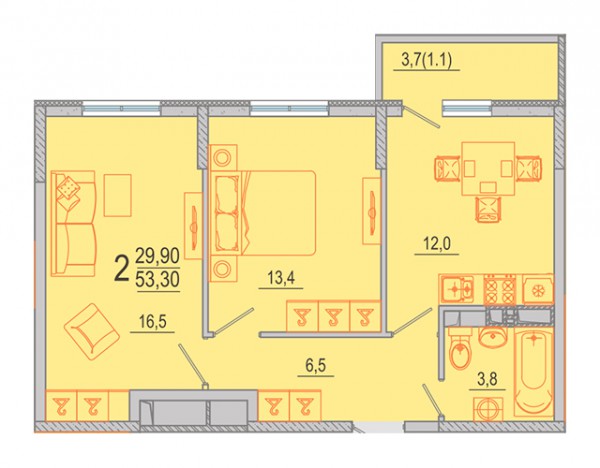 2 комн. квартира в новостройке