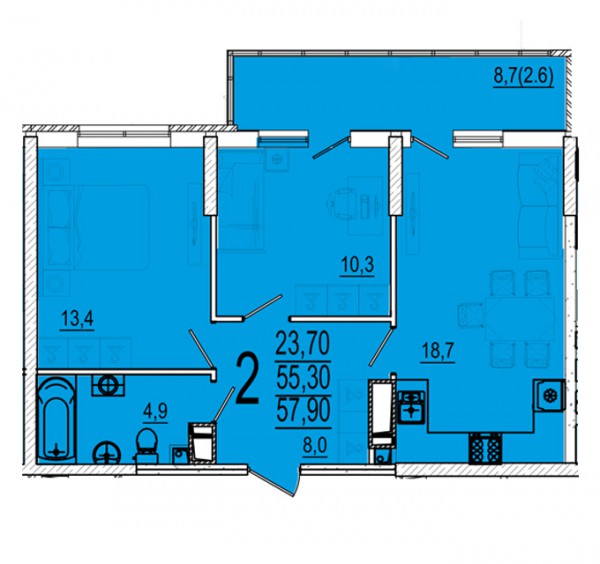 2 комн. квартира в новостройке