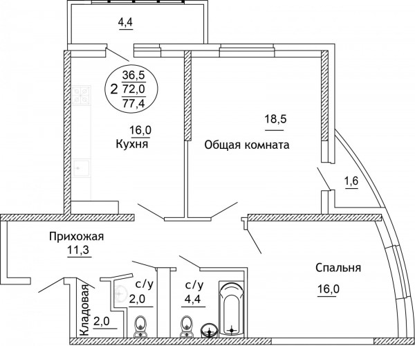 - 18 этаж / 22 этажей, М/к