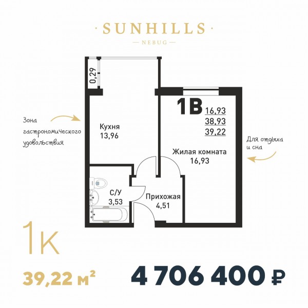 Продаётся 1 комн. квартира за 6 500 000 рублей. Небуг, № 18384