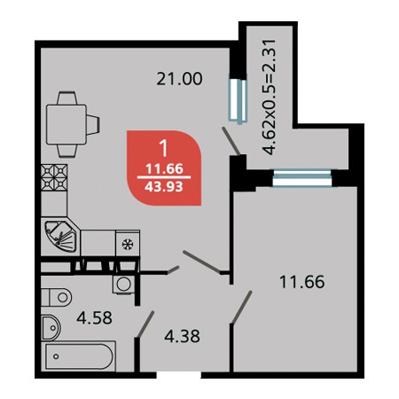 1 комн. квартира в новостройке