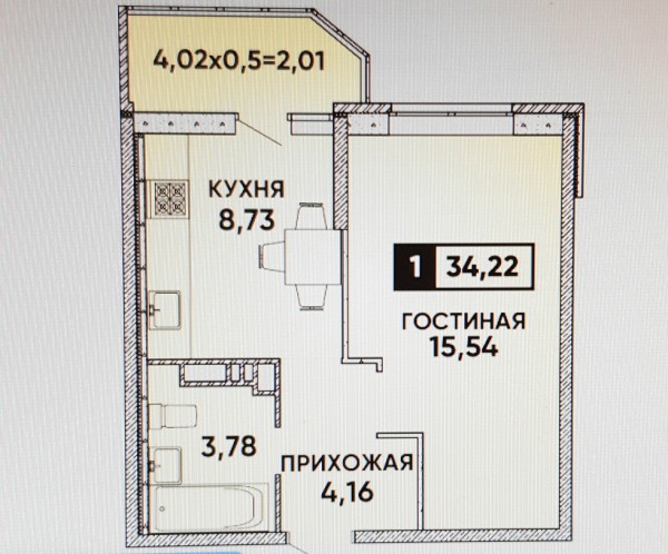 1 комн. квартира в новостройке