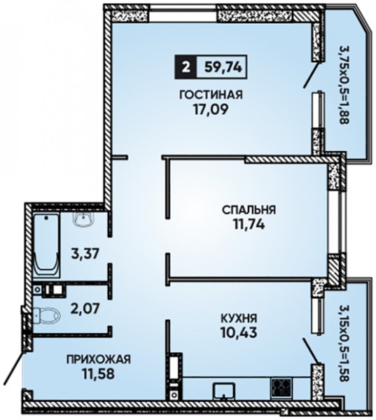 2 комн. квартира
