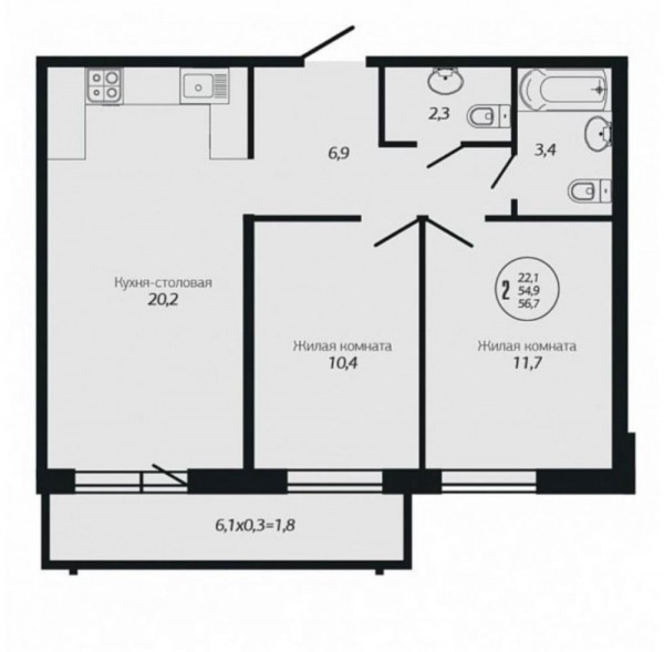 2 комн. квартира