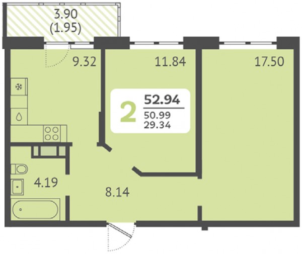 2 комн. квартира