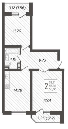 2 комн. квартира