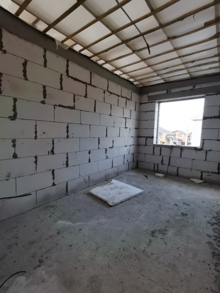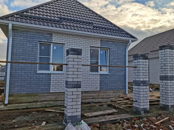 Стены облицованы силикатным кирпичом, стены и потолок утеплены эковатой. В доме выполнена разводка отопления, в том числе, теплые полы, разводка электричества по 3 вывода в каждой комнате и 5 на кухне, наличие стяжки пола. На стенах штукатурка и шпатлевка под поклейку обоев. Натяжные потолки. При желании можно также благоустроить мансарду, застройщик установит лестницу на 2 этаж, одно или два мансардных окна. Так же можно благоустроить террасу.