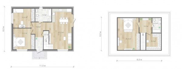 Второй этаж - 2 комнаты, холл, санузел.
