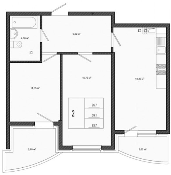 2 комн. квартира