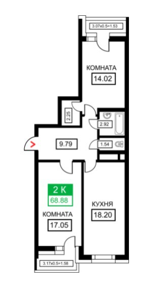 2 комн. квартира