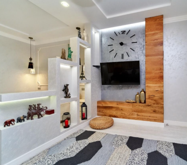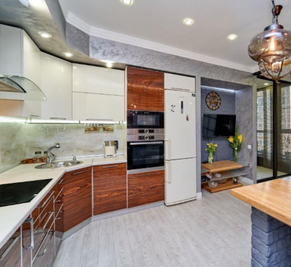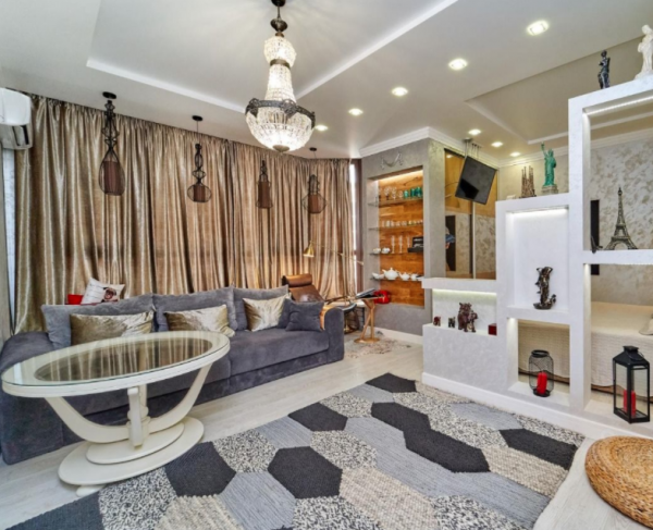Каждая зона квартиры продумана, с учетом зонирования сделано освещение и необходимое количество розеток, а так же дополнительных источников питания для разнообразных приборов. Многоуровневые потолки и точёное освещение, идеально подобранные по цветовой гамме импортные обои и декоративные решения в интерьере, качественная мебель и техника, все это позволит проживающим здесь себя чувствовать идеально.