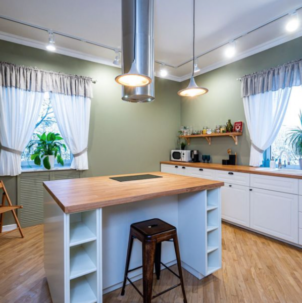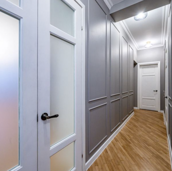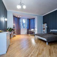 Выполнена реставрация настоящей паркетной доски, деревянных дверей и гранитных подоконников. Все стены и потолки выровнены и окрашены, никакой пластик не использовался. Важно, никаких стен не сносилось и не переносилось . В квартире имеется постирочная и гардеробная .