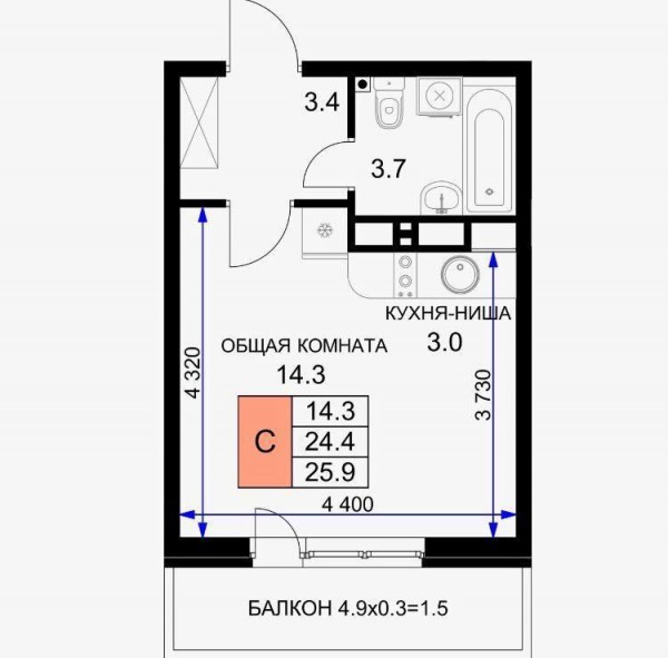 Продам студию площадью 26 кв. м на 16 этаже 17 этажного монолитно-кирпичного дома.