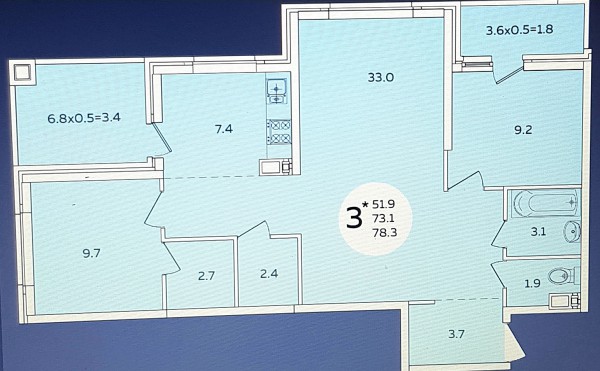 3 комн. квартира в новостройке