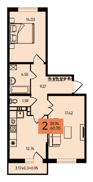 2 комн. квартира в новостройке