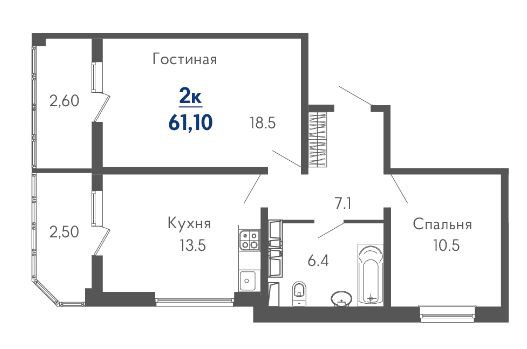 Продаётся 2 комн. квартира за 7 914 750 рублей. Краснодар, № 23717