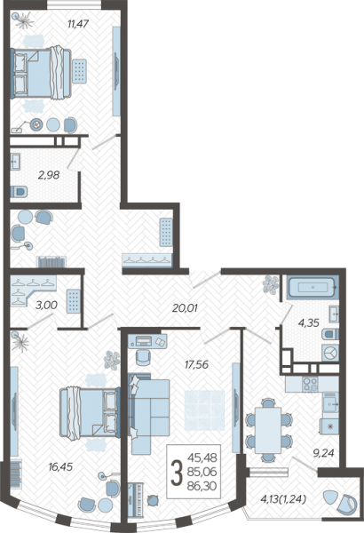 3 комн. квартира в новостройке