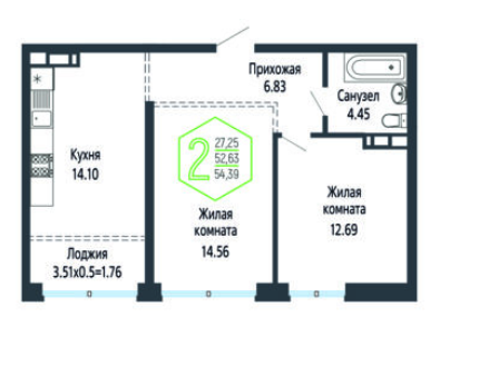 2 комн. квартира