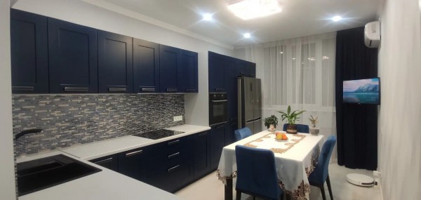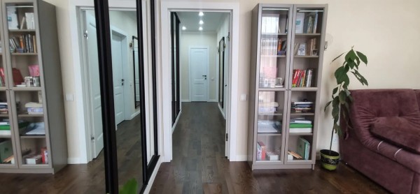 Квартира в идеальном состоянии.. Материалы все качественные и дорогие. Эпоксидная затирка в ванной и на кухне. Можно не бояться плесени. Паркетная доска везде кроме кухни и ванной комнаты, там керамогранит и кафель соответственно. Абсолютно ровные стены. Везде натяжной потолок сатин. Очень много потолочного света и дополнительных настенных светильников. На лоджии из спальной комнаты сделан рабочий кабинет с множеством розеток под рабочую технику и прямым интернетом. Есть wi-fi. Зимой очень тёплая. 6 батарей по всей квартире. 2 кондиционера. Духовка. Посудомоечная машина. Стиральная машина. Водонагреватель на 80л. Встроенные фильтры на воду.