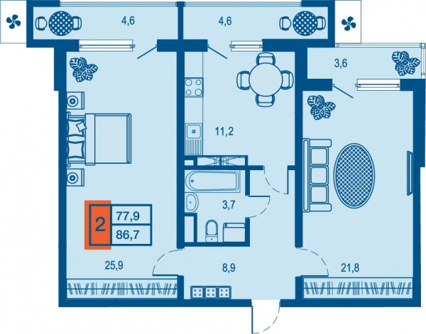 Продаётся 2 комн. квартира в новостройке за 13 048 610 рублей. Краснодар, № 24699
