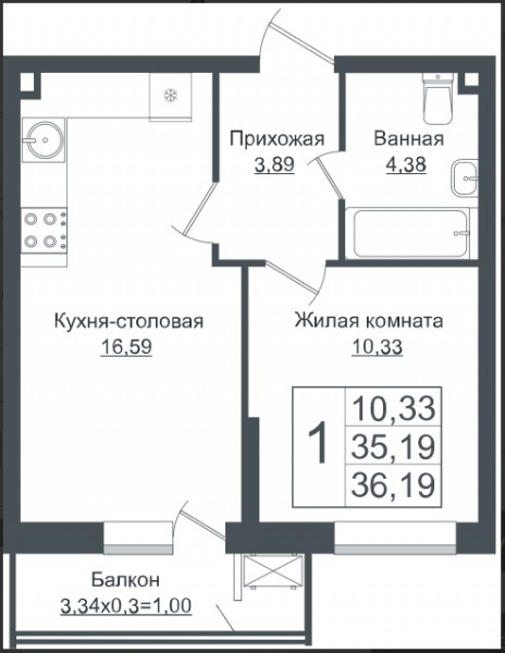 1 комн. квартира в новостройке