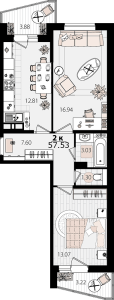 2 комн. квартира в новостройке