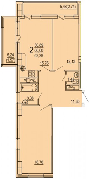 2 комн. квартира