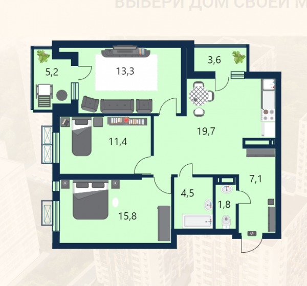 3 комн. квартира