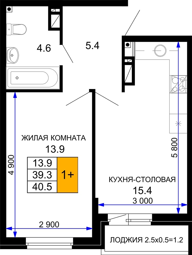 Продам 1ку 41м2, отличная планировка, кухня-гостинная 15,4 м2!!!