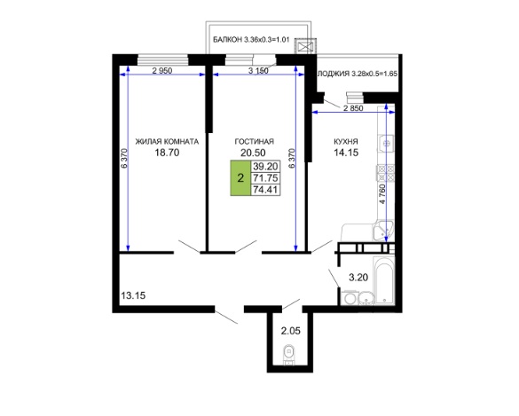 2 комн. квартира