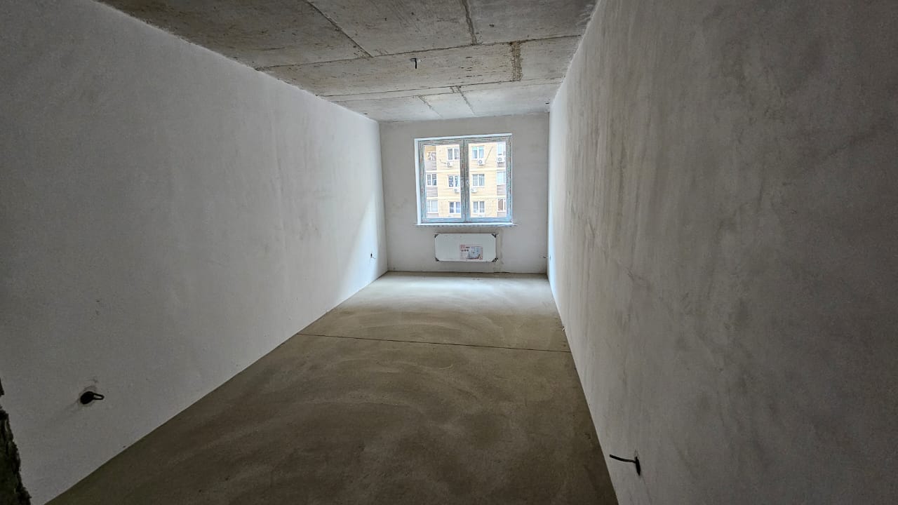 Предчистовая отделка, стены оштукатурены и выведены по маякам, механическая стяжка пола. Балкон и лоджия застеклены. Центральные коммуникации, установлены приборы учета.