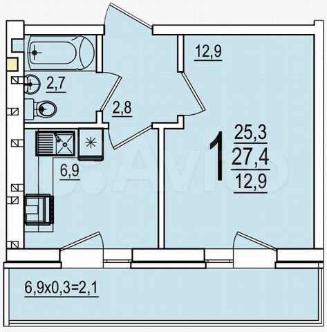24 кв.м., 1 комн. квартира в новостройке