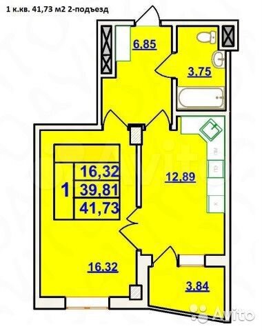 40 кв.м., 1 комн. квартира