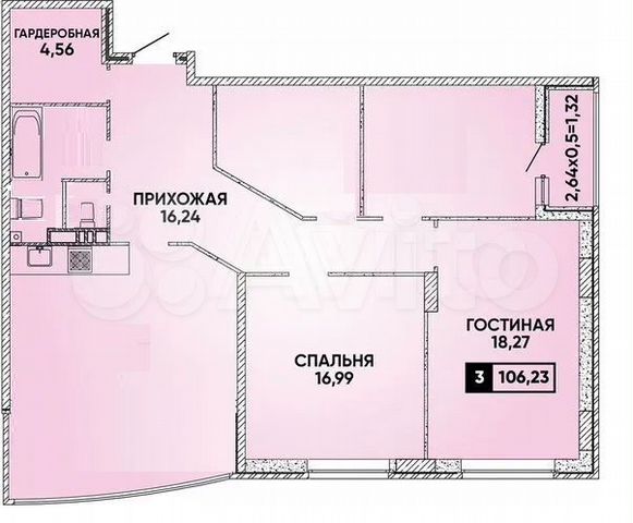 106 кв.м., 3 комн. квартира