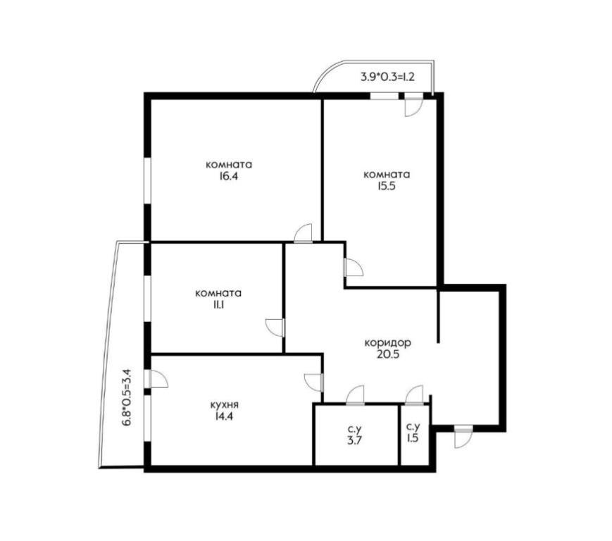 85 кв.м., 3 комн. квартира